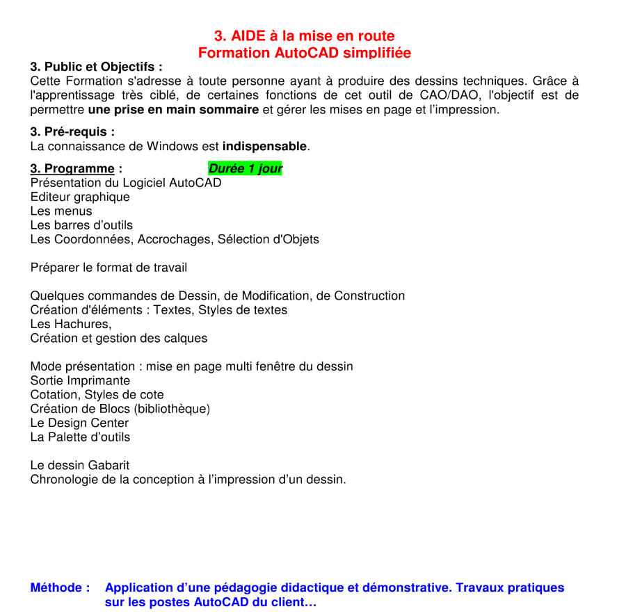 Formation Programmes et Durée Formation BASE Formation à l'écoute de l'entreprise Formation Langage DIESEL Formation PERF Formation Mise à Niveau Formation Mise en route Formation BASE ELEC Bâtiment Formation Programmation LISP BASE Formation Programmation LISP AVANCEE Formation INVENTOR BASE Formation REVIT